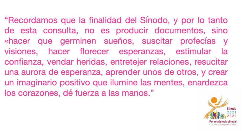 Todo lo anterior pensando en el compromiso del Consejo Episcopal Latinoamericano de colaborar supliendo las necesidades de las 22 Conferencias Episcopales de América Latina y el Caribe en esta materia, de acuerdo con sus expectativas y sugerencias en torno a la fase continental del Sínodo sobre la Sinodalidad.